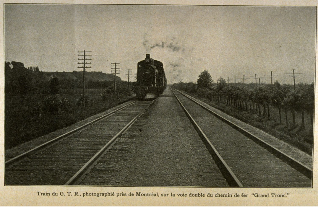 « Harold Innis développe l’idée que le Canada a adopté le chemin de fer pour surmonter les barrières géographiques, en particulier le Bouclier canadien, qui ralentissait son expansion. Cette technologie permet ainsi au jeune pays de maîtriser son espace et de s’affirmer face à son voisin du sud. Innis constate également que si le train est nécessaire pour déplacer matières premières et marchandises, il permet aussi aux hommes de voyager, favorisant ainsi les échanges sociaux et culturels entre ceux-ci, faisant de ce moyen de transport un moyen de communication à part entière. De par ses fonctions, le chemin de fer, en donnant une cohérence interne au Canada, va participer à l’unification économique, mais aussi politique et culturelle de celui-ci. »